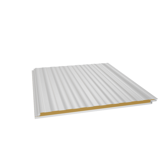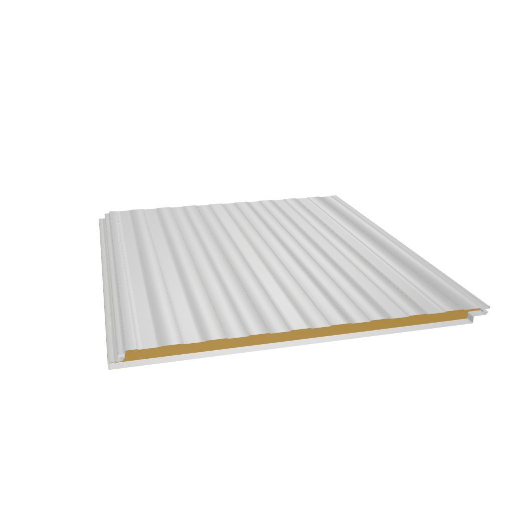 Panel aislante para muros prefabricados compuesto por un núcleo de espuma rígida de poliuretano, una cara exterior de acero Ternium Pintro y una cara interior de laminación de vinil color blanco con malla de refuerzo. Para muros de construcciones de baja especificación, ideal para forros y naves industriales que no requieren capacidad estructural.
