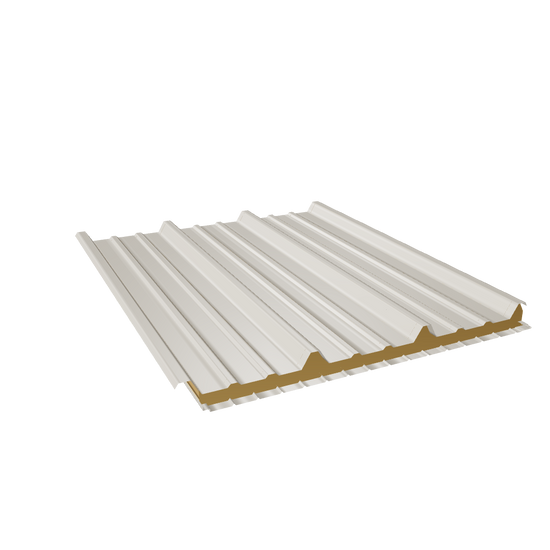 Panel con cara exterior de acero y cara interior de vinil, diseñado para cubiertas, fachadas, bodegas, cuartos fríos y casetas. Opción económica que brinda aislamiento acústico y térmico básico, resistencia a la corrosión y fácil instalación.